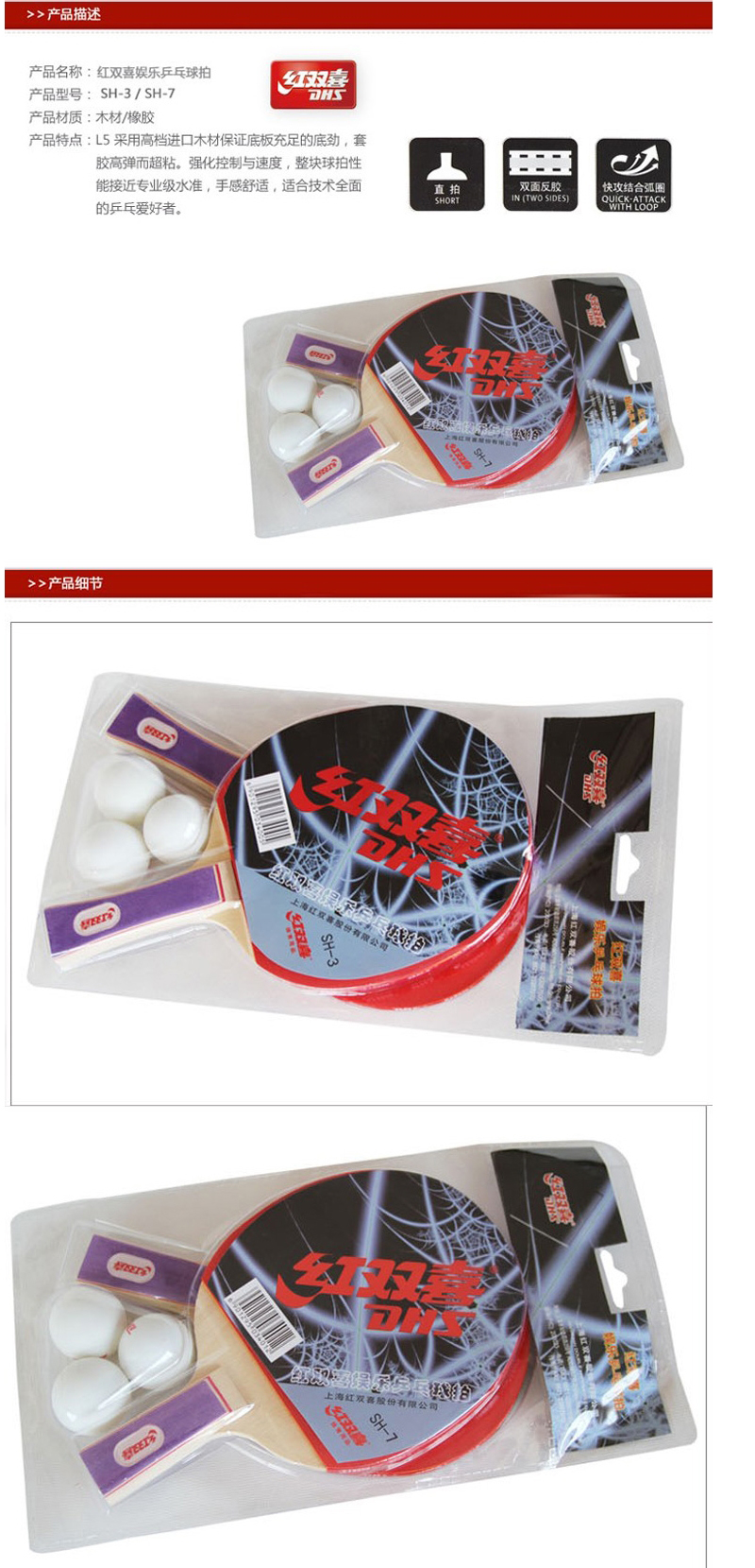- 商品名稱:紅雙喜乒乓球拍 SH-7(2只/付)按付售