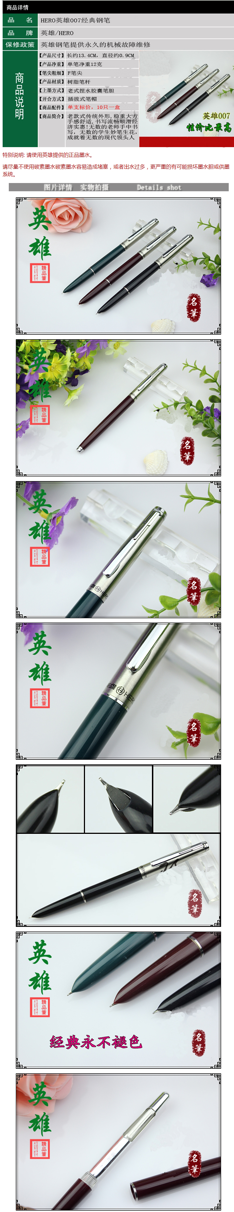 英雄HERO 0.38mm 007 鋼筆塑干鋼套銥金筆(混色,15支/盒)