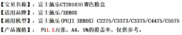 - 商品名稱:原裝富士施樂(FUJI XEROX)2270/3373復(fù)印機(jī)墨粉筒 青色(Toner Cartidge-Cyan)
