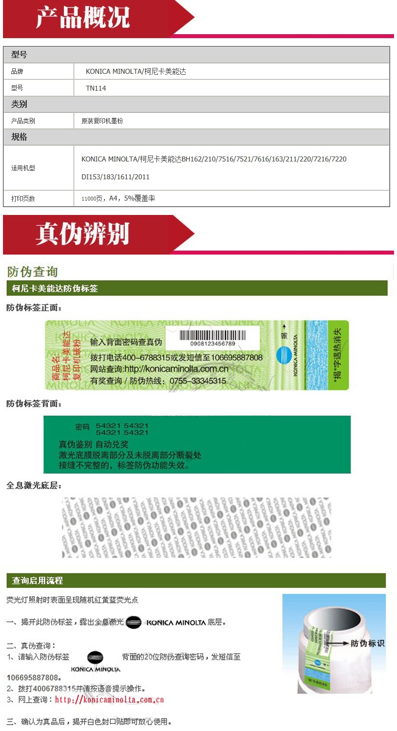 - 商品名稱:原裝柯尼卡美能達(dá)(KONICA MINOLTA)TN114復(fù)印機(jī)墨粉