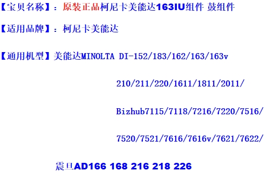 - 商品名稱:原裝柯尼卡美能達(dá)(KONICA MINOLTA)鼓組件 7616v/7621/7622/7115