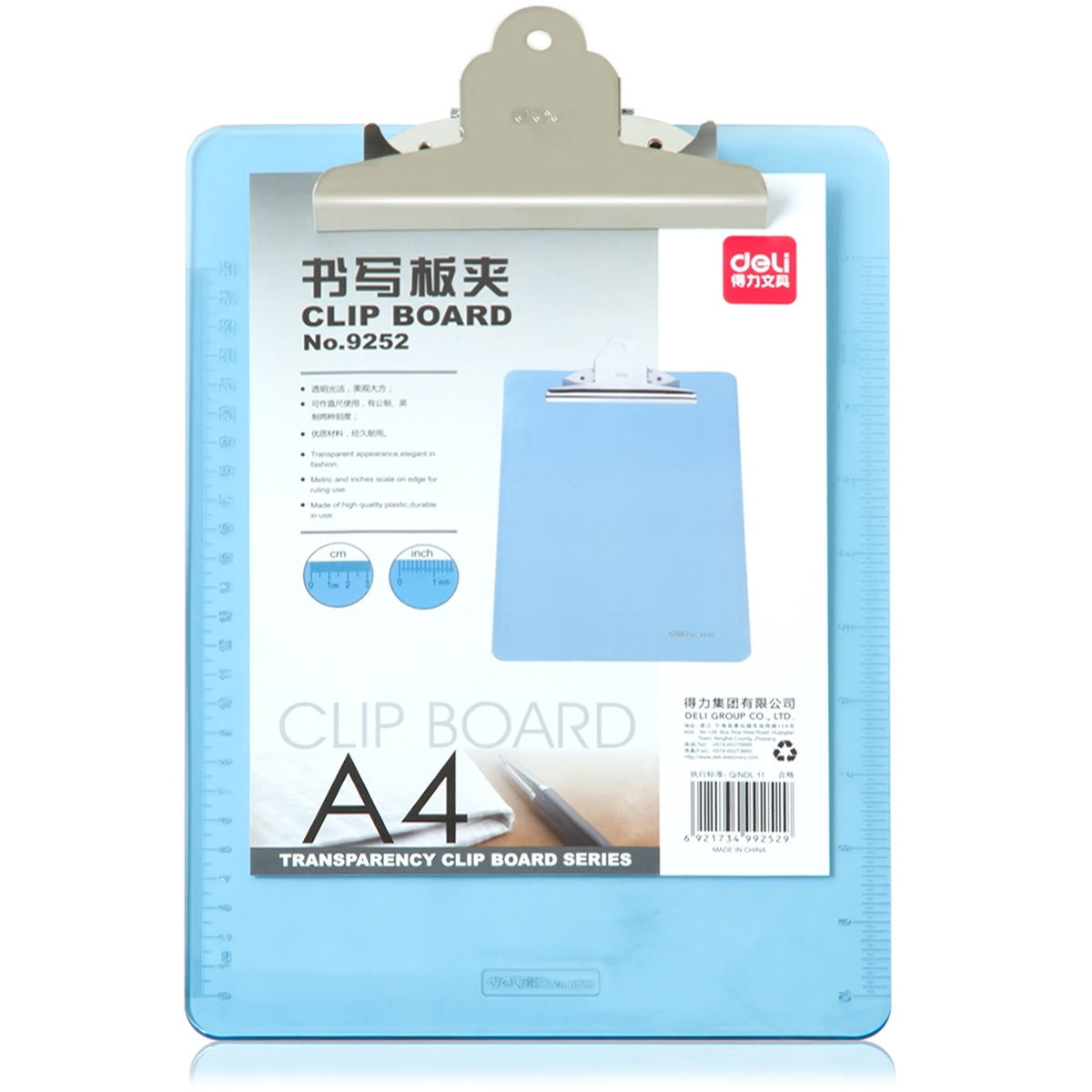 - 商品名稱:得力(deli) A4 山型透明書寫板夾 9252(15個(gè)/箱)