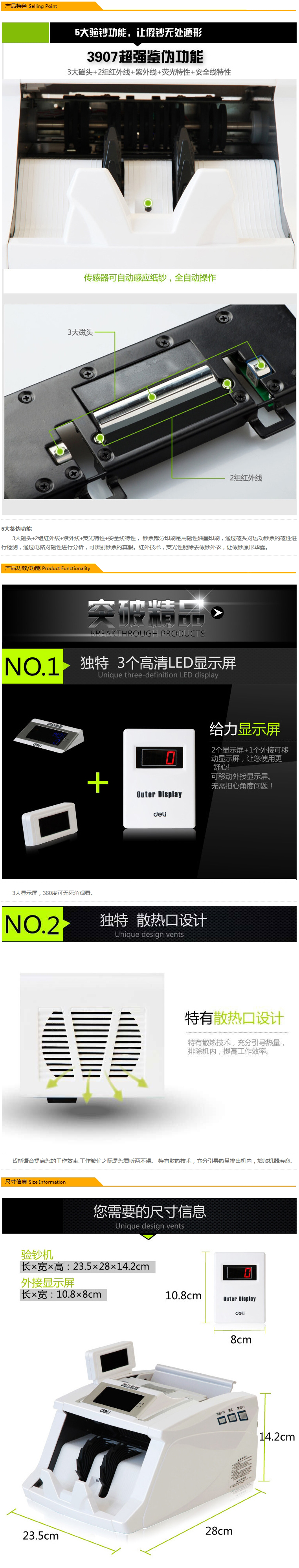 • 商品名稱:得力(Deli)3907 全智能點(diǎn)鈔機(jī) 雙顯示屏