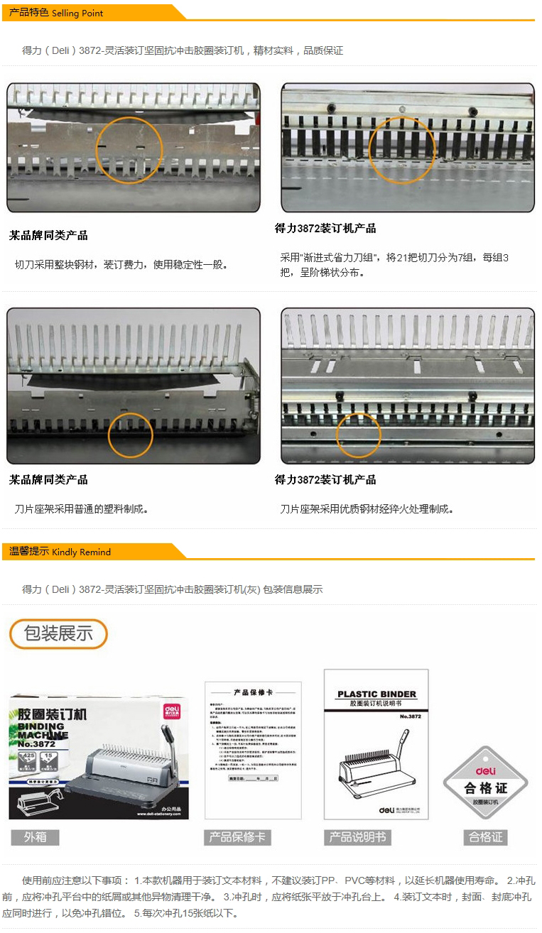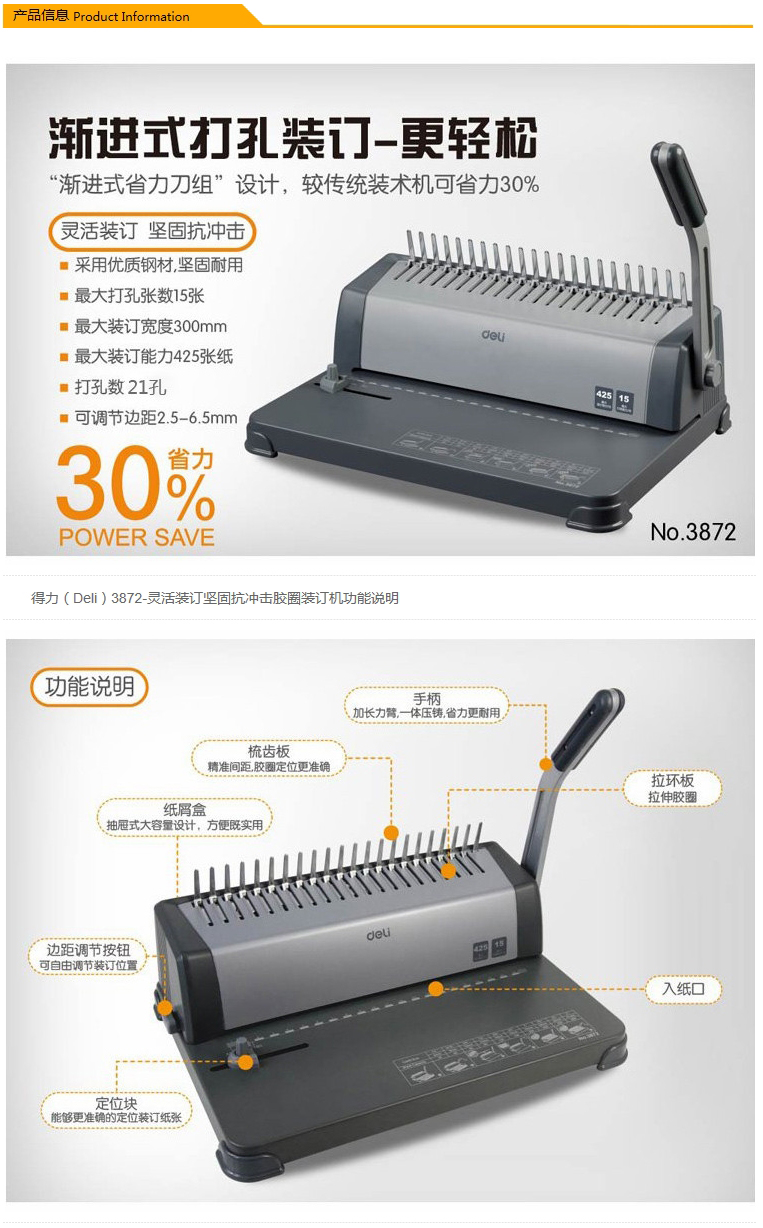 - 商品名稱:得力(Deli)3872 靈活裝訂堅(jiān)固抗沖擊膠圈裝訂機(jī)(單次打孔張數(shù)15張/次)