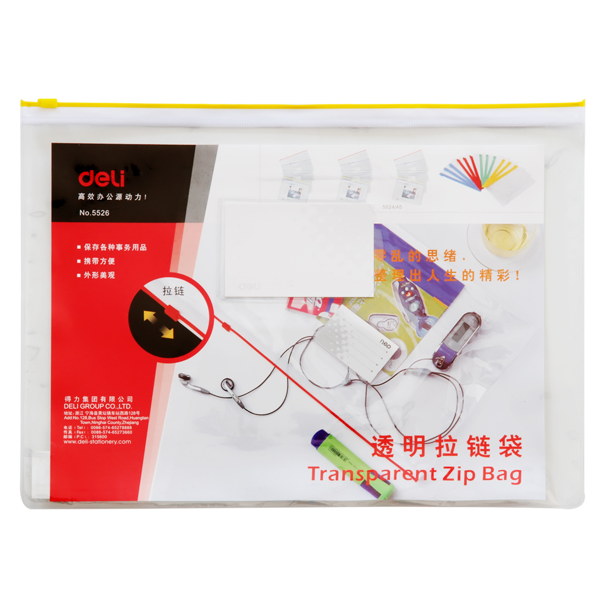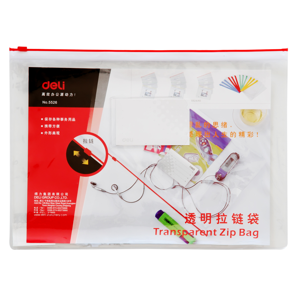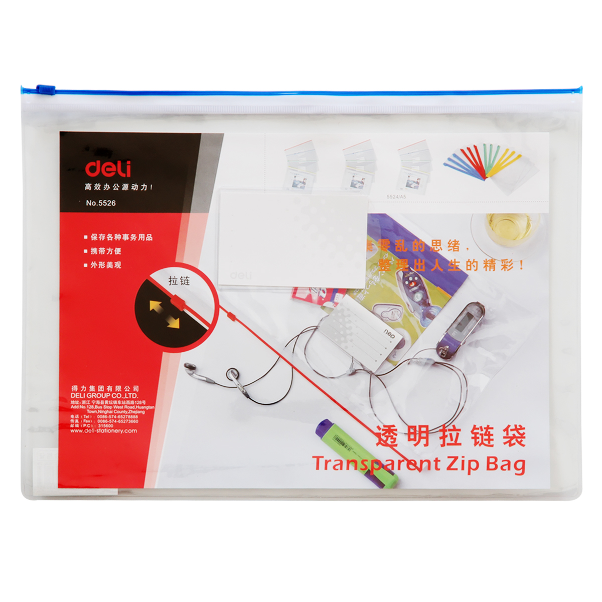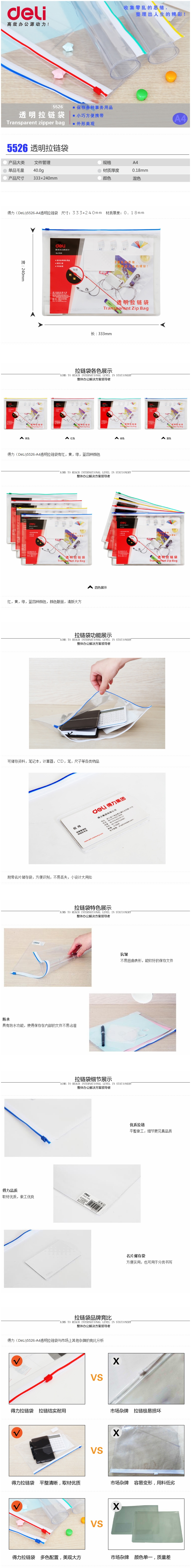 • 商品名稱(chēng):得力(deli)透明PVC拉鏈袋 5526(混色,A4,12個(gè)/包)