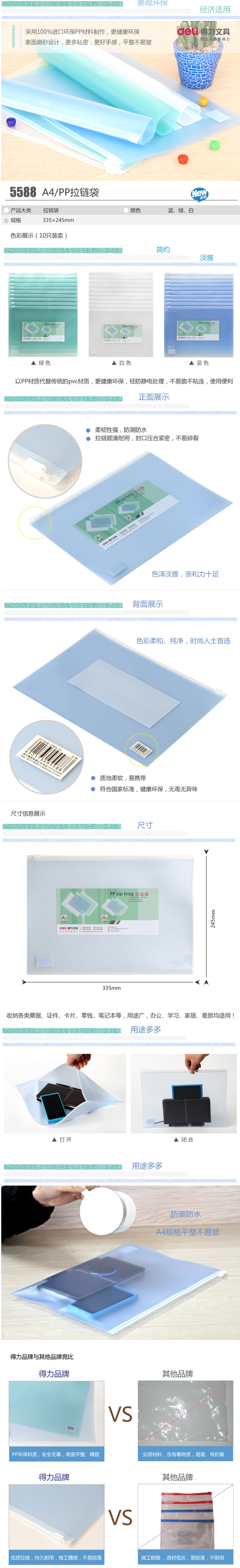 - 商品名稱:得力(deli)透明PP拉鏈袋 5588(混色,A4,10個(gè)/包)