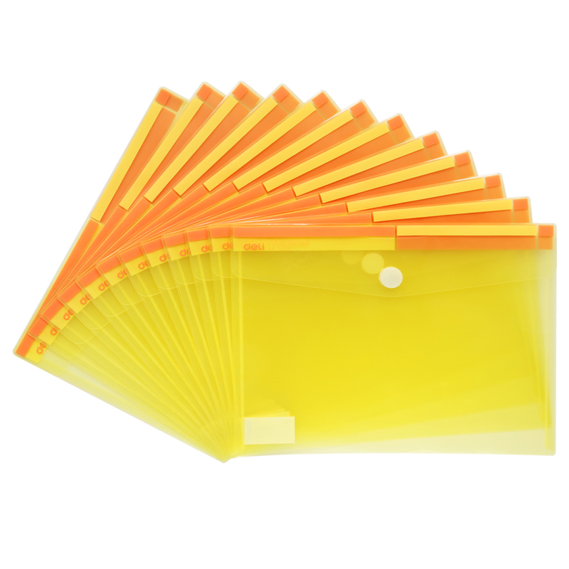 得力(deli)透明粘扣文件袋 5504(混色,A4,12個/包)