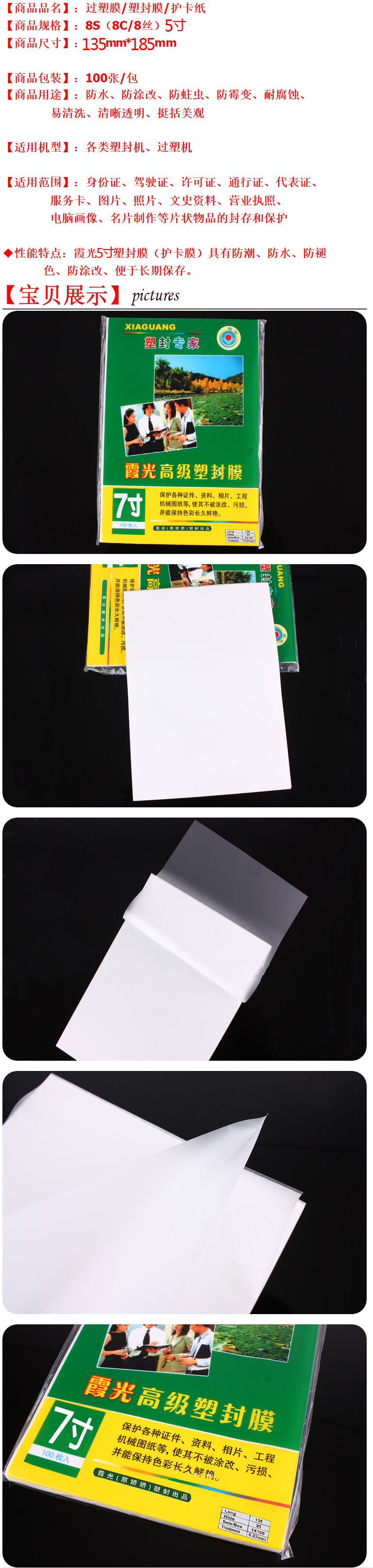 • 商品名稱:霞光塑封膜 (7寸,8S,100個(gè)/包)按包售