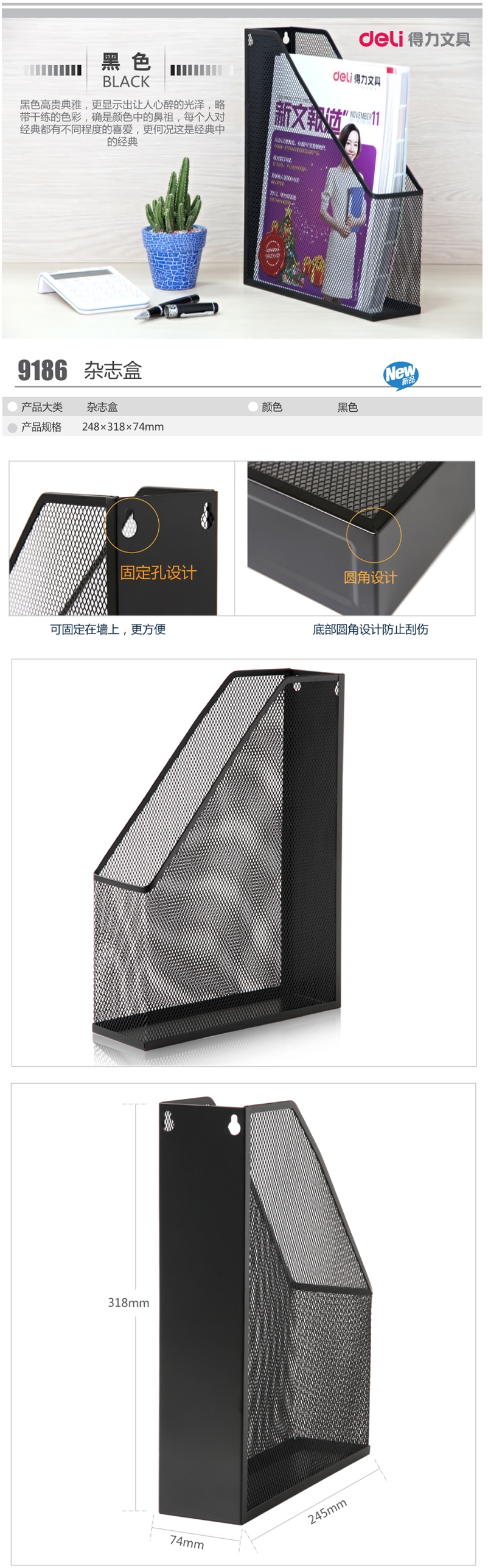 - 商品名稱:得力(deli)9186 鐵絲單欄雜志盒/文件欄