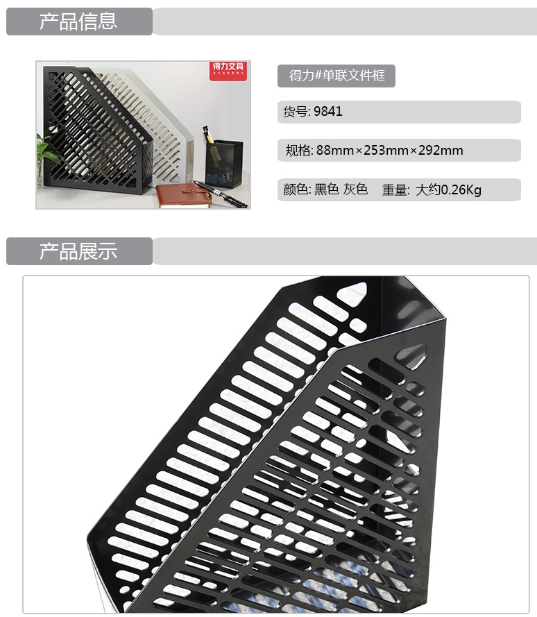- 商品名稱:得力(deli)9841 單欄文件欄 黑色