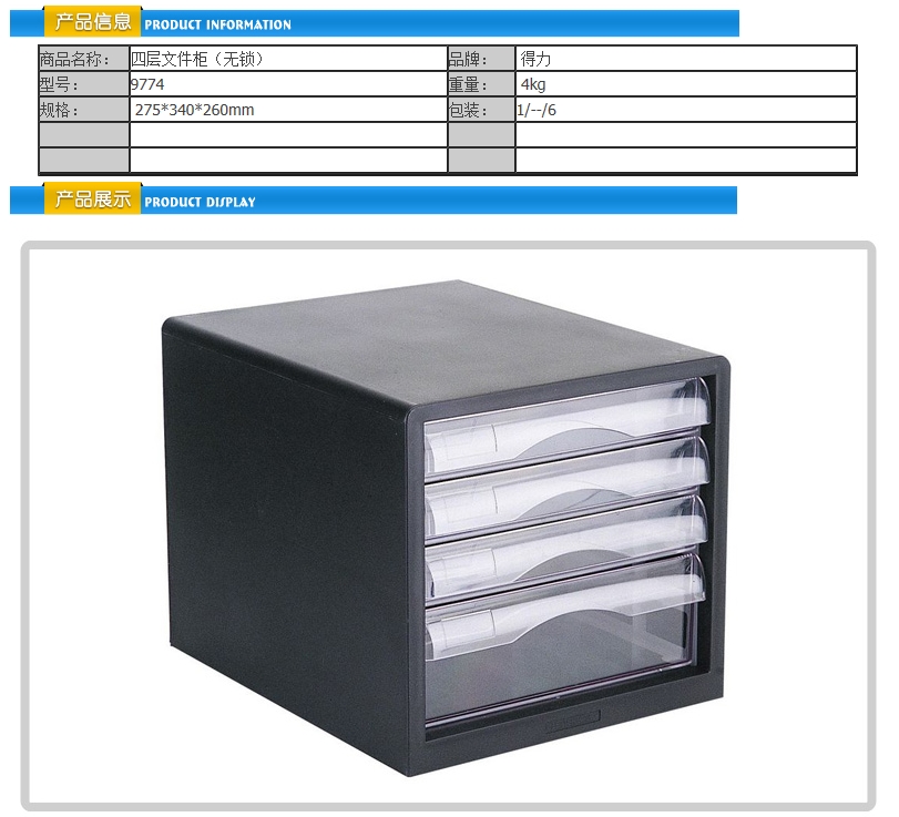 得力(deli)9774 四層文件柜(無鎖,規(guī)格:275*340*260mm)