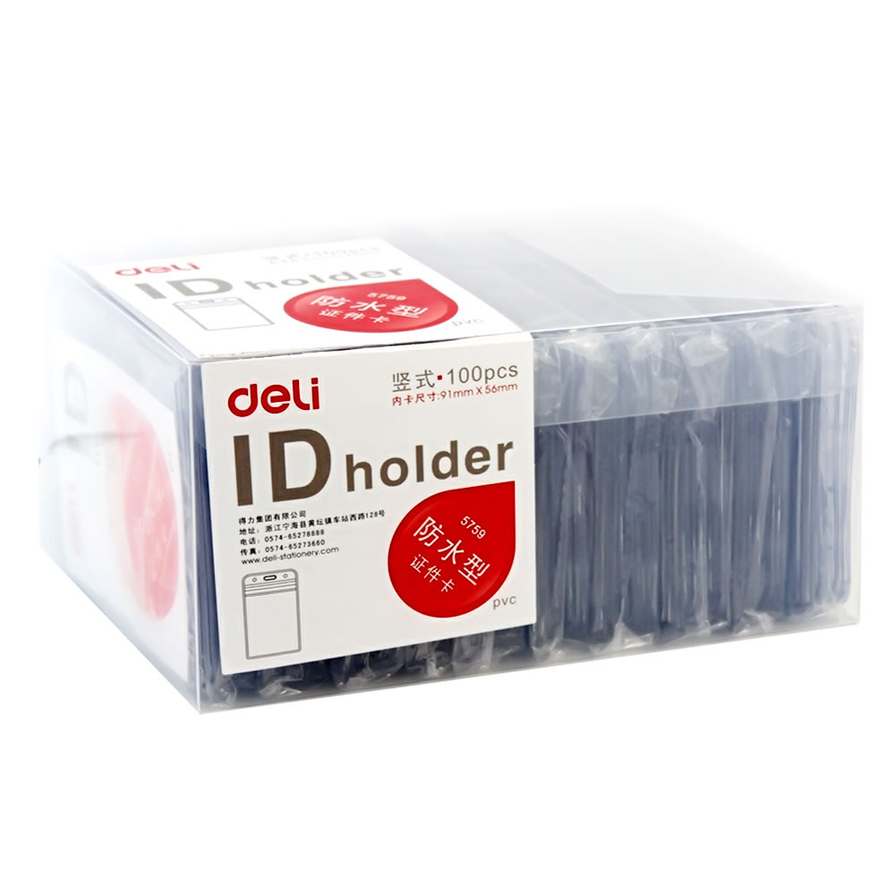 得力(deli)PVC透明防水豎式證件卡 5759(10個/包;10包/盒)按包售