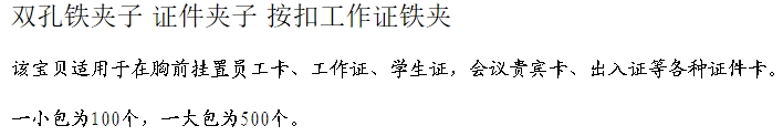 - 商品名稱:透明證件扣/進(jìn)口鐵夾子(100個(gè)/包)按包售
