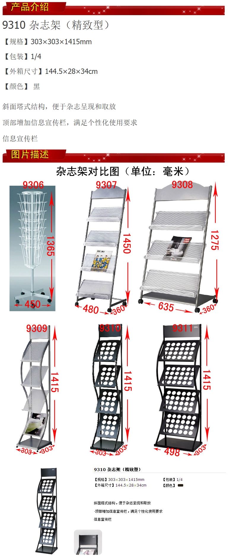 - 商品名稱:得力(deli)9310精致型雜志架(303*303*1415mm)