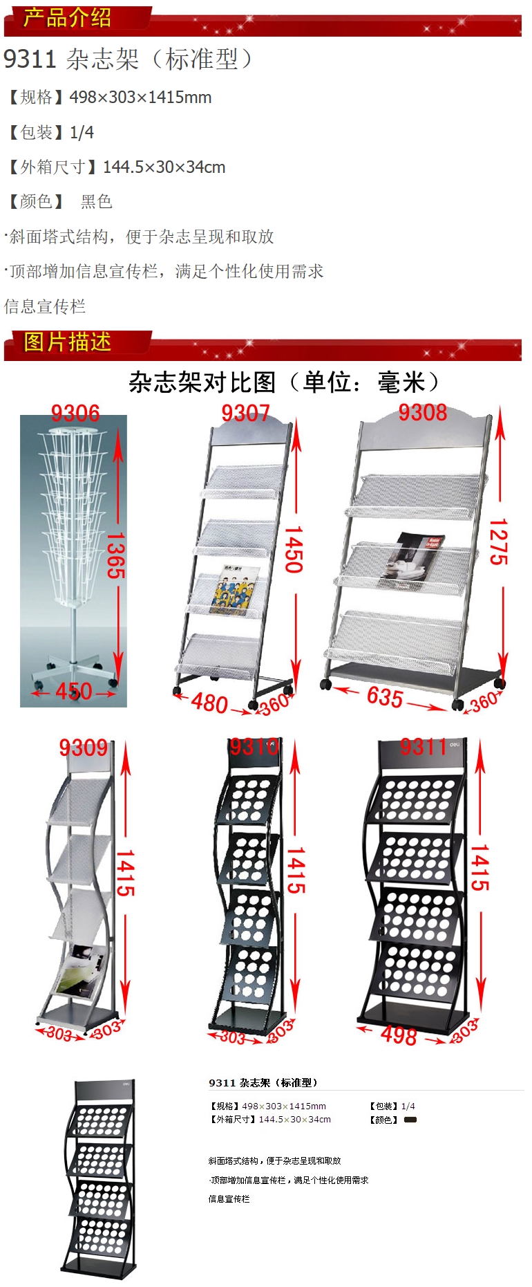 - 商品名稱:得力(deli)9311標(biāo)準(zhǔn)型雜志架(498*303*1415mm)