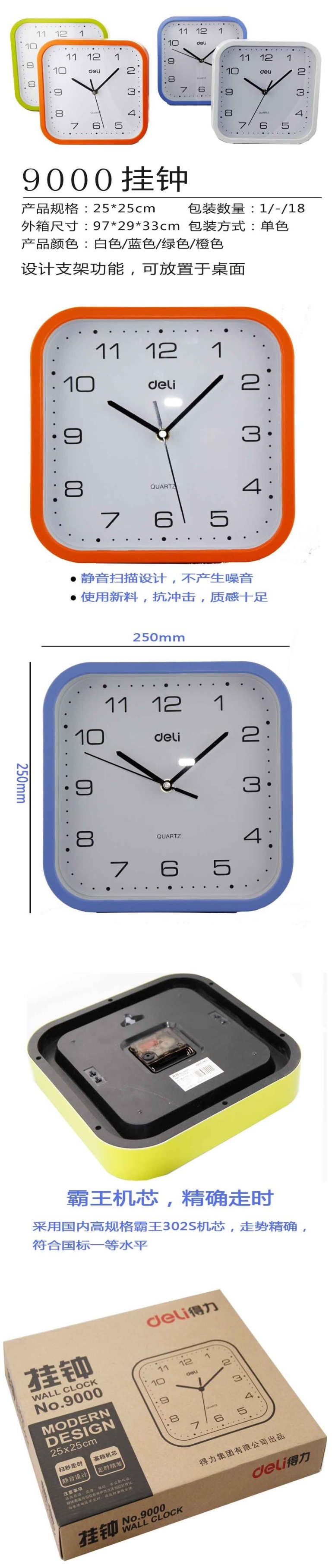 - 商品名稱:得力(deli)方形掛鐘9000(規(guī)格:25*25cm)