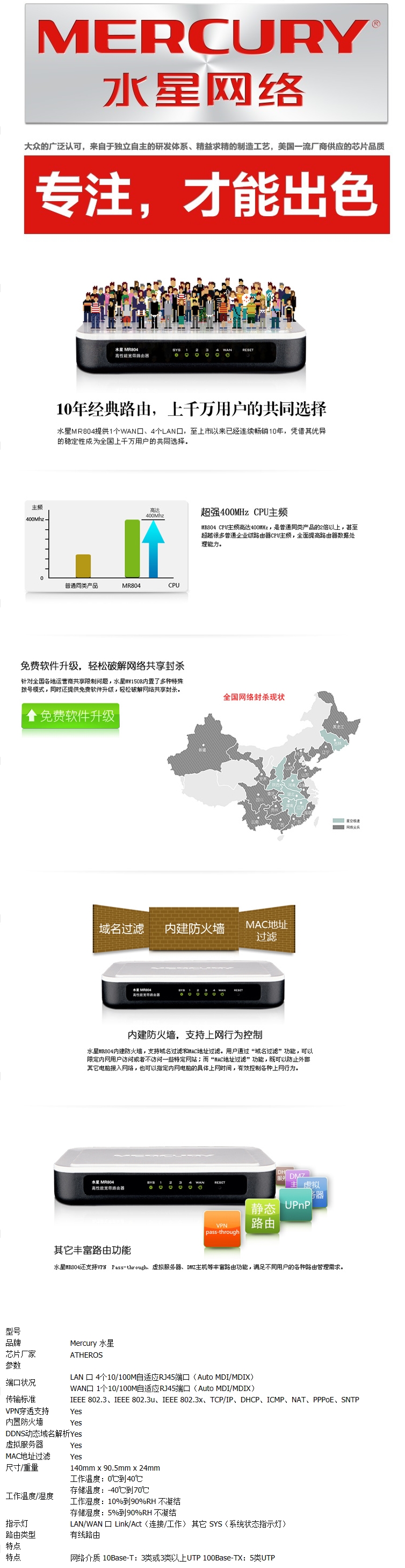 - 商品名稱(chēng):水星寬帶路由器 4孔 MR804