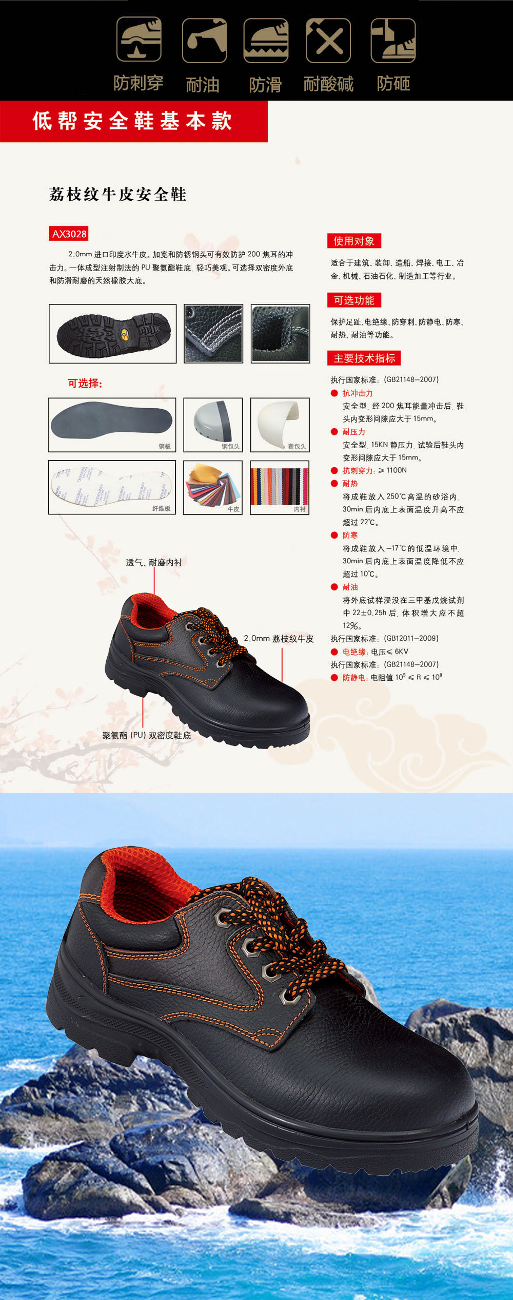 勞保鞋AX3028 防刺穿+(防砸、防滑、耐油、耐酸堿)41碼