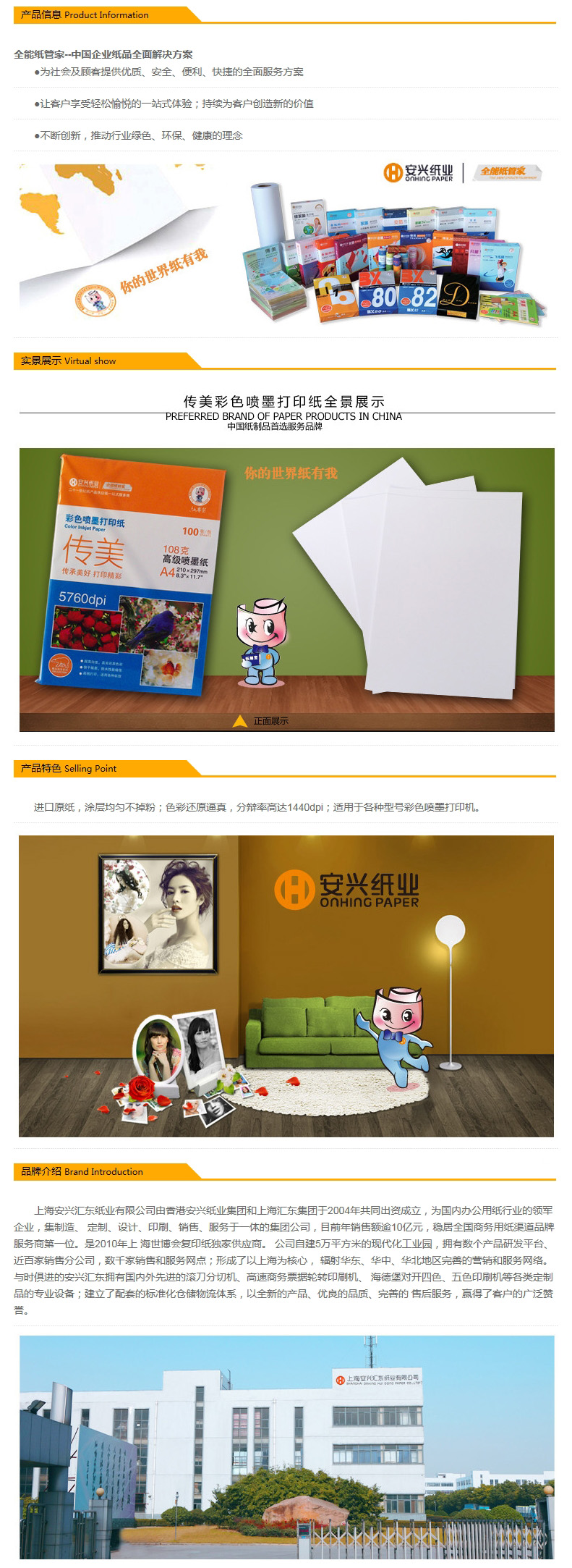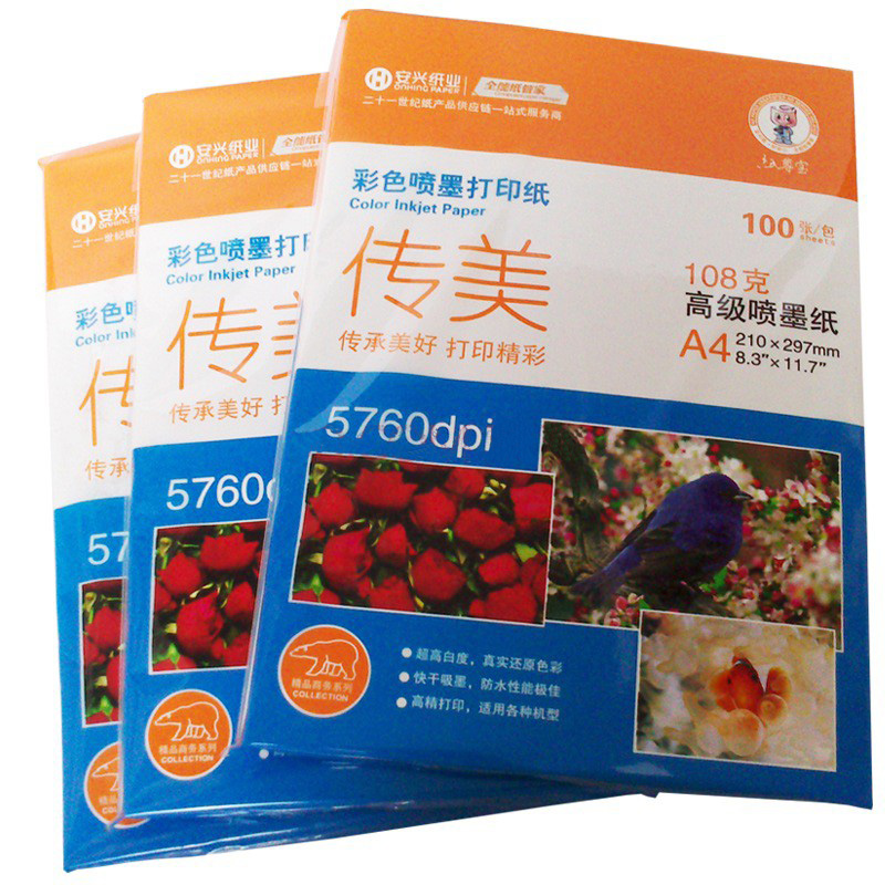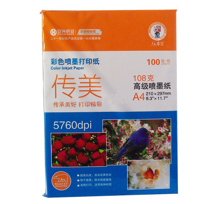 - 商品名稱:傳美 A4 108g 彩色噴墨打印紙(100張/包,20包/箱)