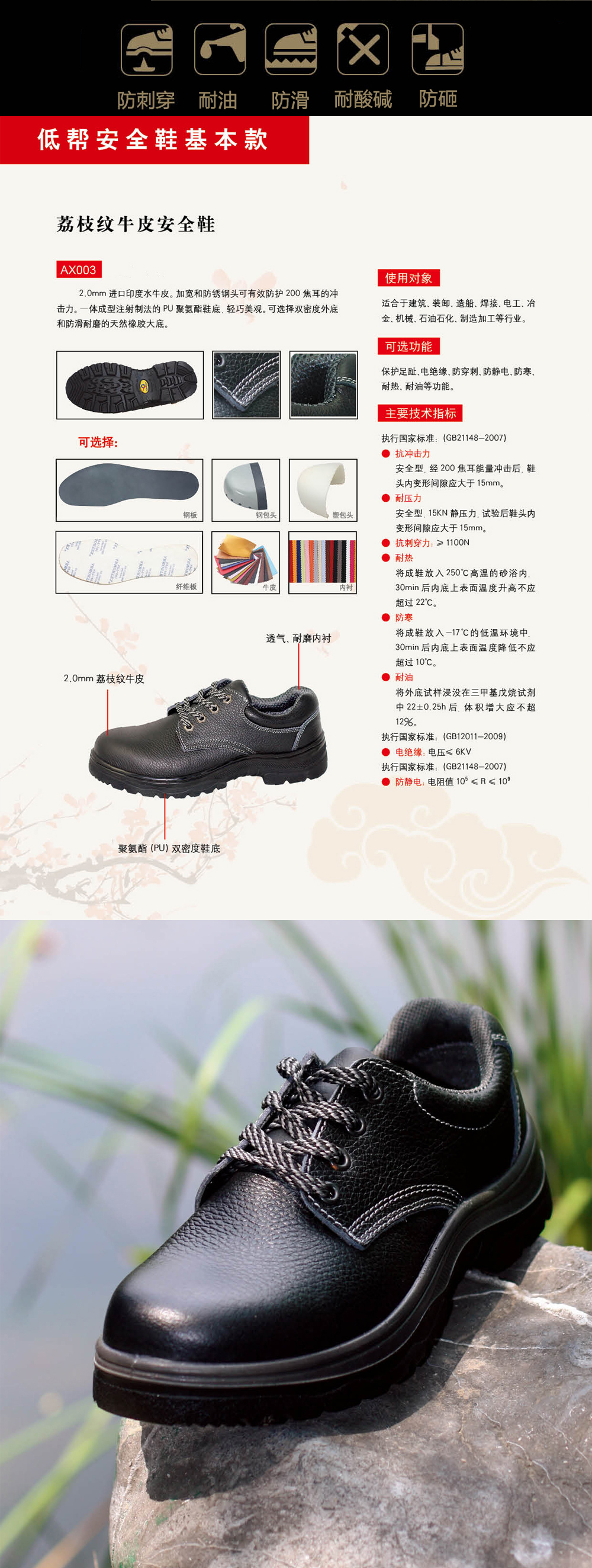 勞保鞋AX003 防刺穿+(防砸、防滑、耐油、耐酸堿)42碼