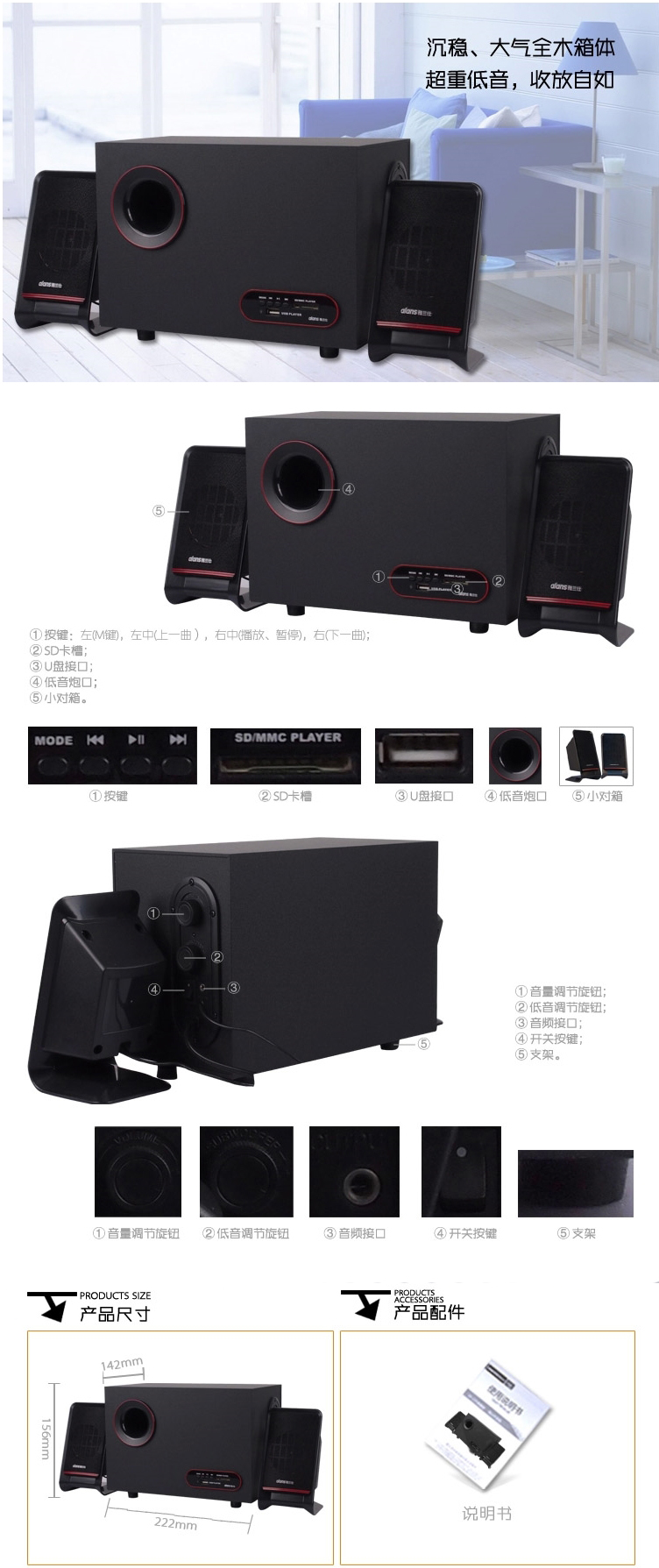 - 商品名稱:雅蘭仕(EARISE)AL-937 增強(qiáng)版多媒體電腦音箱 可插卡/U盤 2.1低音炮 黑色