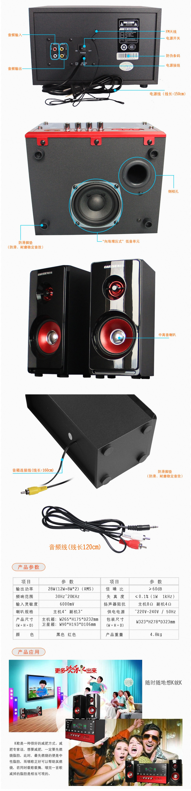 - 商品名稱:雅蘭仕(EARISE)AL-988 家用臺式電腦音箱 2.1多媒體超重低音炮 卡拉OK音響