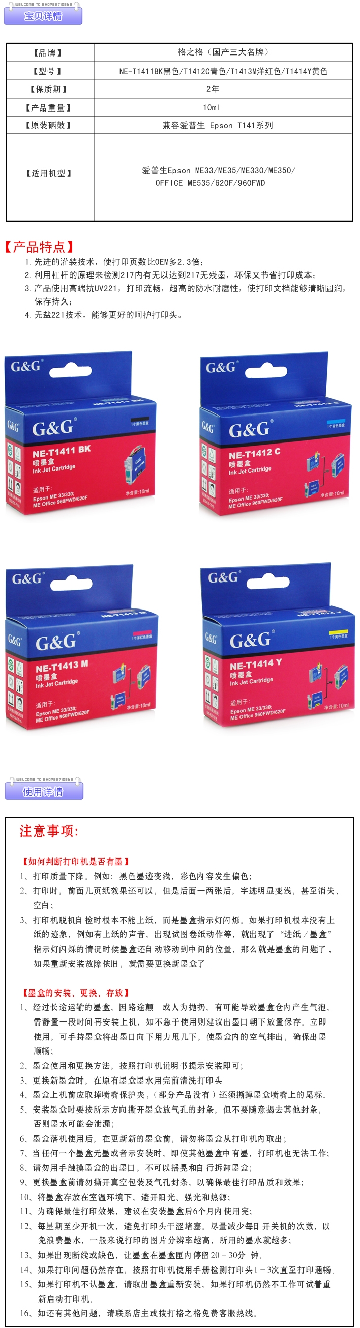 - 商品名稱:格之格(G&G)NE-T1414Y 黃色墨盒