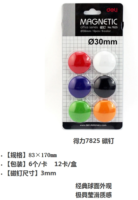得力(deli)卡裝磁吸/磁釘7825(混裝;30mm,6顆/卡)
