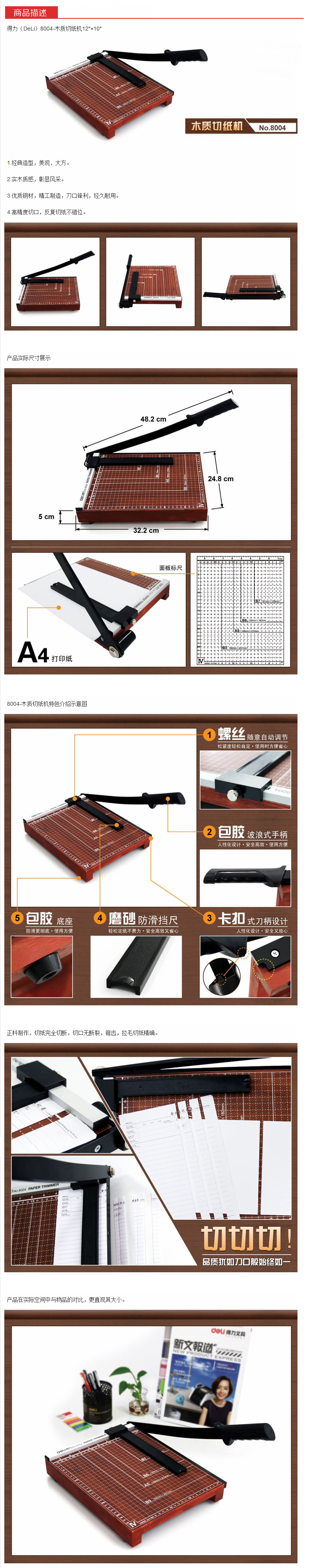 - 商品名稱:得力(deli) 8004 木質(zhì)切紙機(jī)/切紙刀/裁紙刀/裁紙機(jī) 300mm*250mm(可切A4)