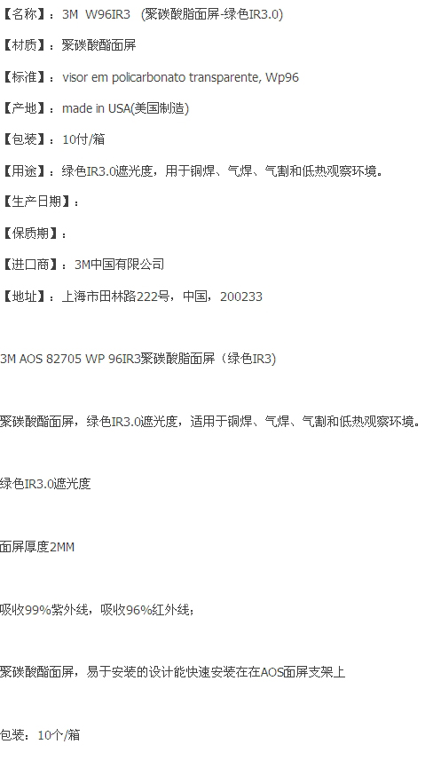 - 商品名稱:3M 82705 W96R3聚碳酸酯面屏(綠色 IR3.0)