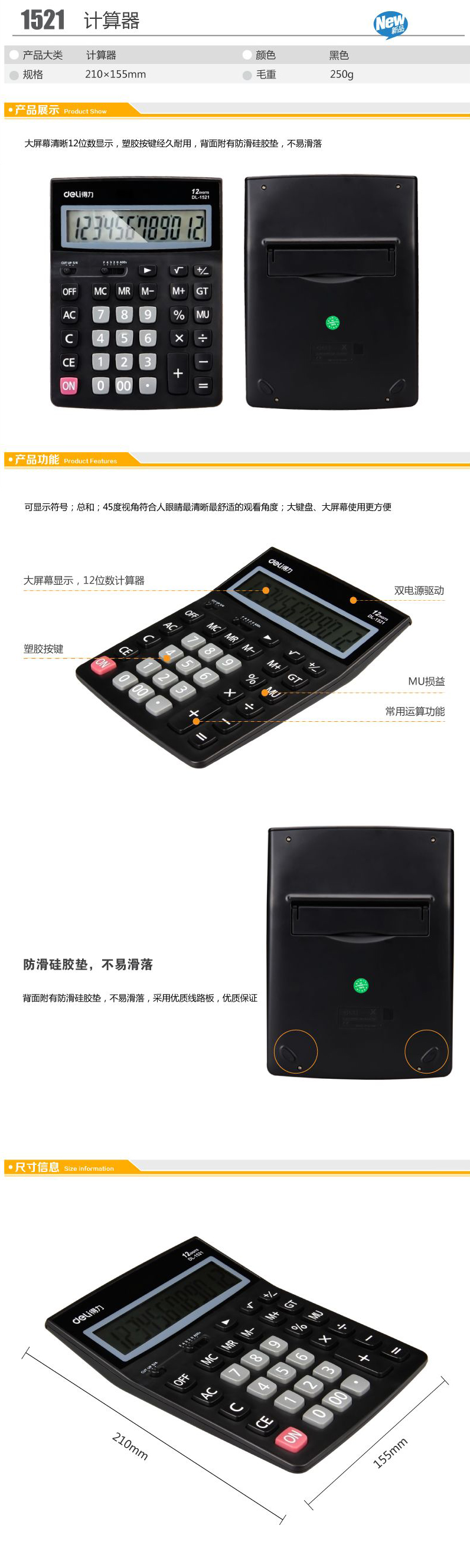 - 商品名稱:得力(deli)桌面型計算器 1521A