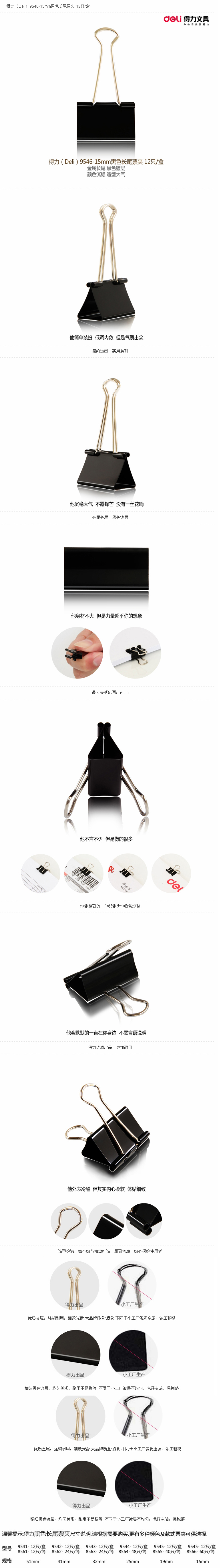 - 商品名稱:得力(deli)盒裝長尾票夾黑色 15mm 6# 9546(12只/盒)