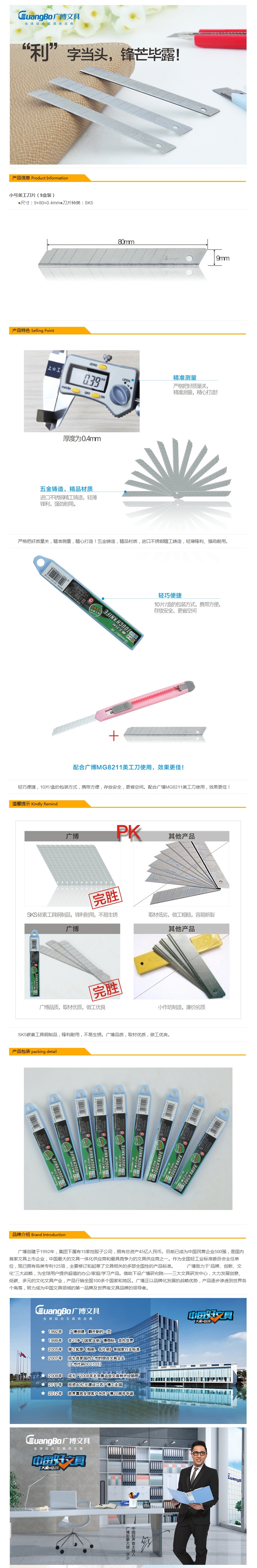 • 商品名稱:廣博美工刀片 小 9mm MG5422(36小盒/中盒)