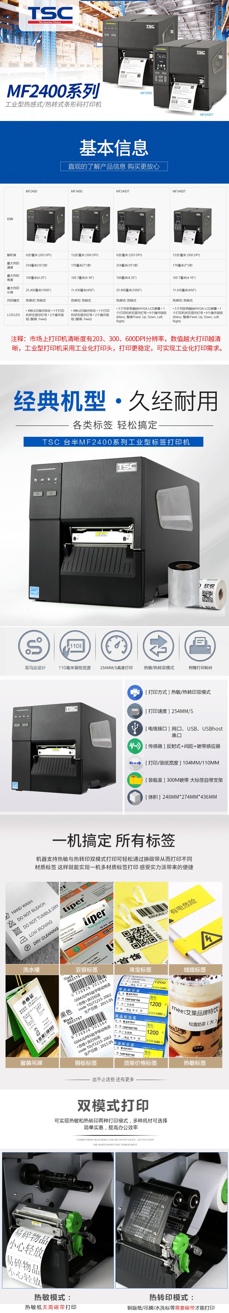 - 商品名稱:臺半(TSC)MF2400/MF3400工業(yè)型標(biāo)簽條碼打印機(jī)二維碼標(biāo)簽商業(yè)景區(qū)快遞門票 帶網(wǎng)絡(luò)接口 MF 3400(300dpi)無屏標(biāo)配