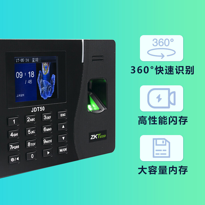 - 商品名稱:ZKTeco/中控智慧JDT50 指紋考勤機(jī) 快速簽到打卡機(jī) 自助報(bào)表 U盤/局域網(wǎng)傳輸