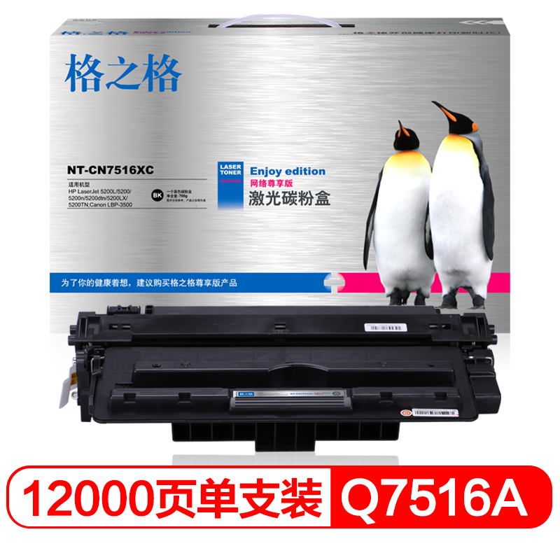 - 商品名稱:格之格Q7516A大容量硒鼓NT-CN7516XC尊享版適用惠普hp 5200 5200n 5200LX 佳能LBP3500打印機粉盒HP16A硒鼓