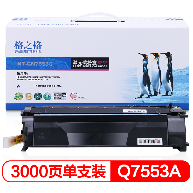 - 商品名稱:格之格Q7553A硒鼓NT-CN7553C適用惠普hp P2014 p2015 M2727nf 佳能LBP3310 3370打印機(jī)墨粉盒