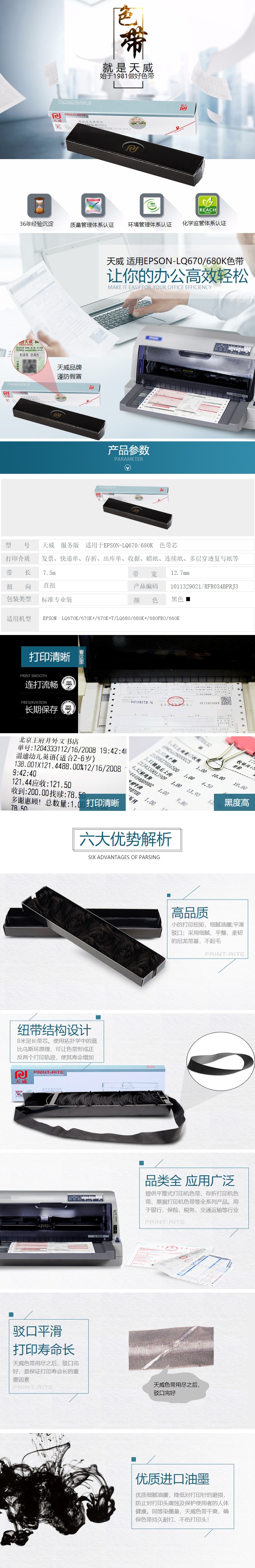- 商品名稱:天威(PrintRite)服務(wù)版 LQ670K/680K 色帶芯 適用于EPSON-LQ670/680K-7.5m,12.7mm-黑色 BK直芯