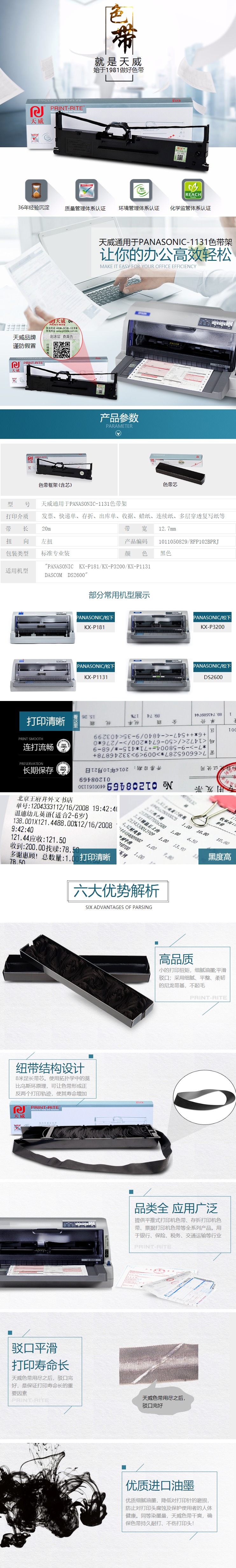 - 商品名稱:天威 1131色帶 適用于松下PANASONIC KX-P181 KX-P3200 KX-P1131打印機 色帶架 DASCOM DS2600