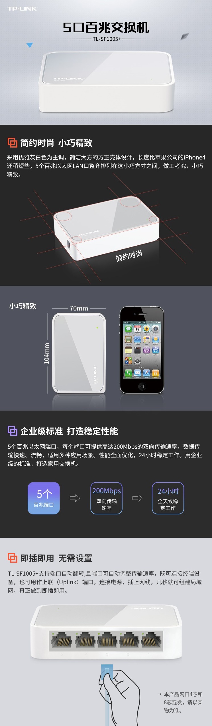 - 商品名稱:TP-LINK 5口百兆交換機 4口監(jiān)控網(wǎng)絡(luò)網(wǎng)線分線器 家用宿舍分流器 TL-SF1005+