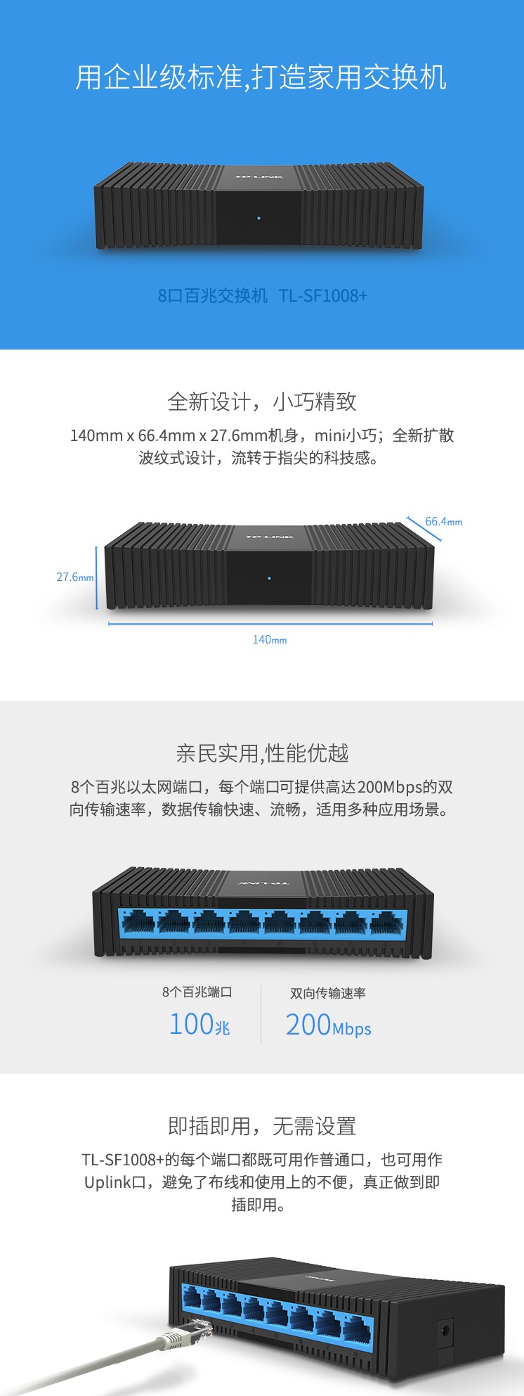 - 商品名稱:TP-LINK 8口百兆交換機 監(jiān)控網絡網線分線器 家用宿舍分流器 TL-SF1008+