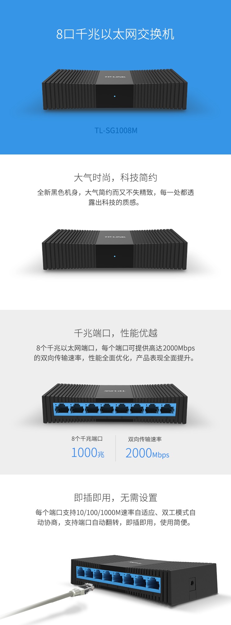 - 商品名稱:TP-LINK 8口千兆交換機 企業(yè)級交換器 監(jiān)控網(wǎng)絡網(wǎng)線分線器 分流器 兼容百兆 TL-SG1008M
