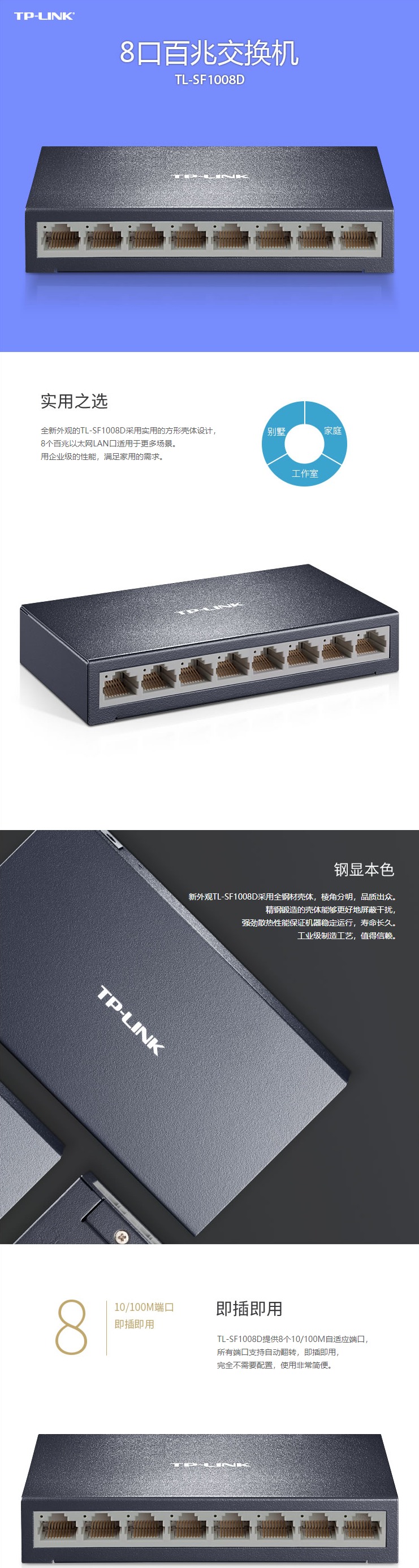 - 商品名稱:TP-LINK 8口百兆交換機 監(jiān)控網(wǎng)絡網(wǎng)線分線器 分流器 金屬機身 TL-SF1008D