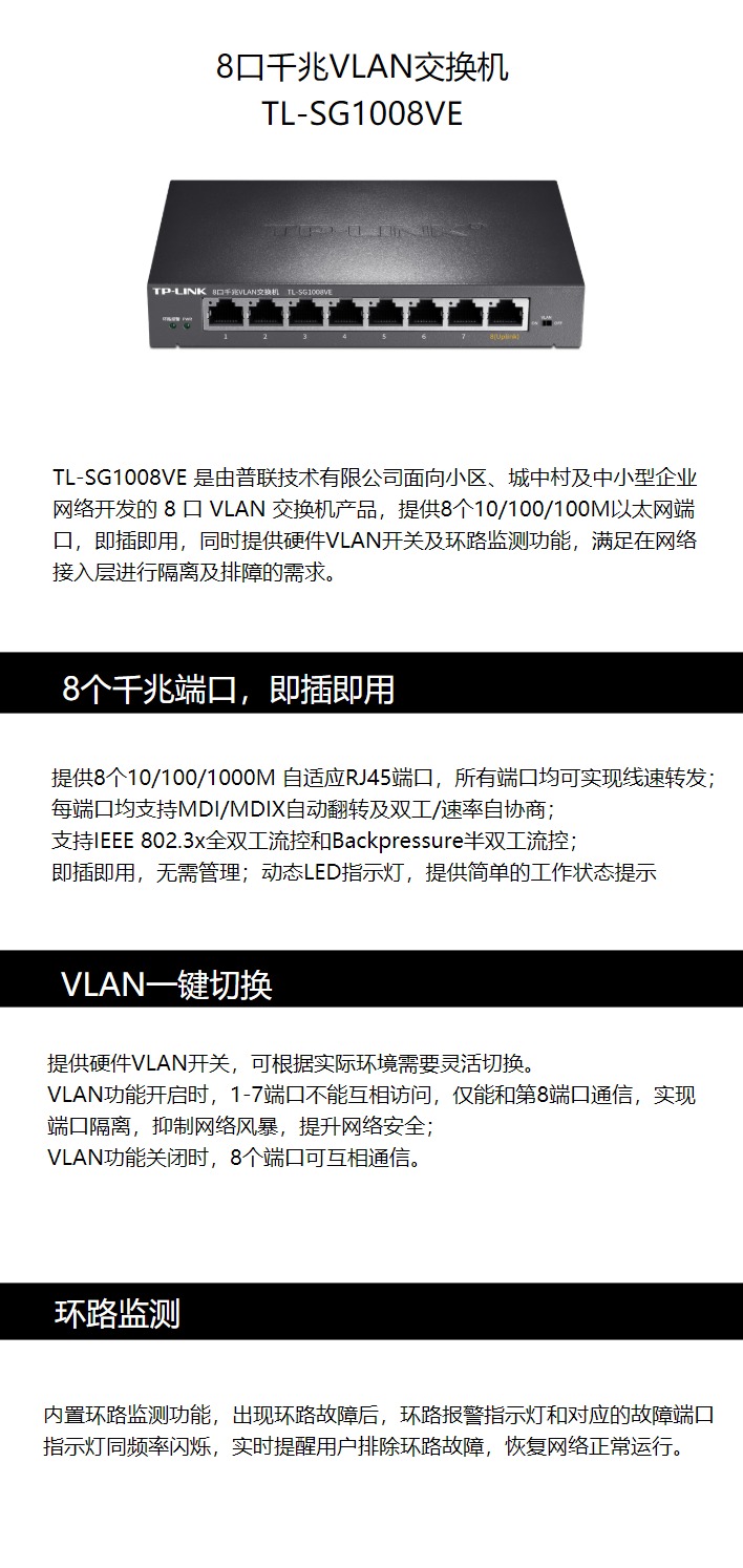 - 商品名稱:TP-LINK TL-SG1008VE 8口千兆VLAN交換機(jī)