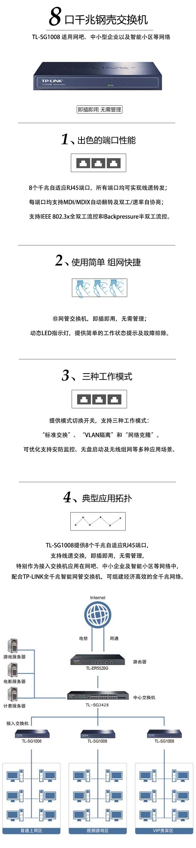 - 商品名稱:TP-LINK TL-SG1008 8口全千兆非網(wǎng)管交換機