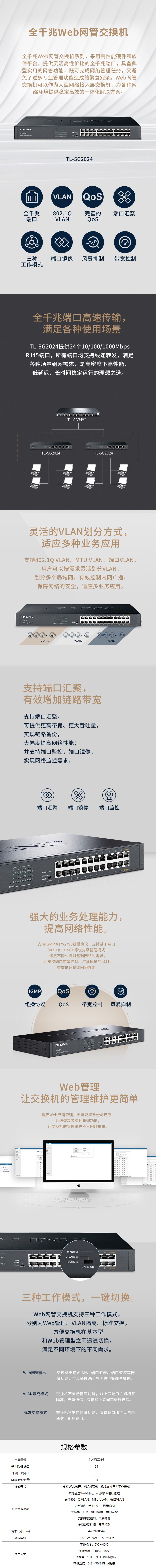 - 商品名稱:TP-LINK TL-SG2024 24口全千兆Web網(wǎng)管交換機
