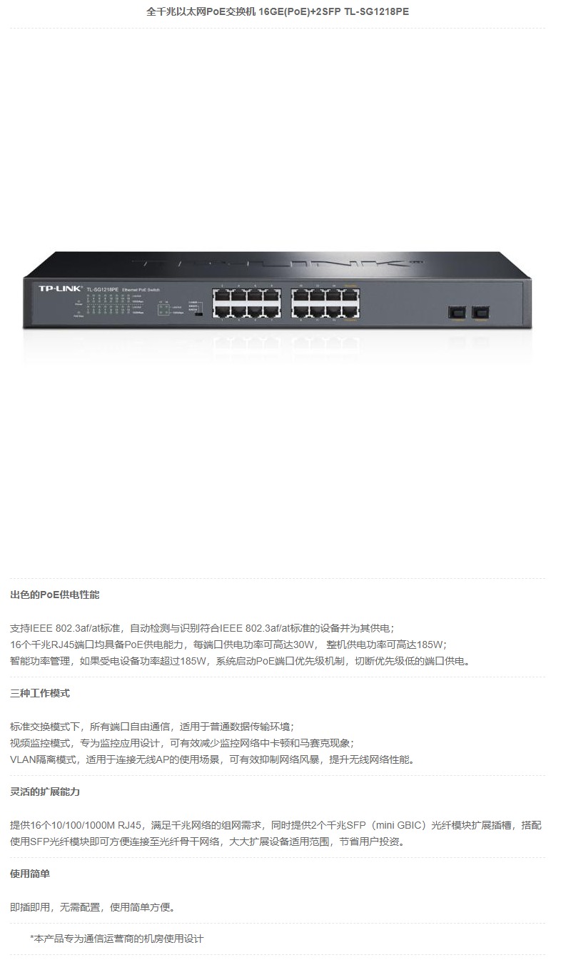 - 商品名稱(chēng):TP-LINK TL-SG1218PE 16口千兆POE交換機(jī) (2千兆光纖口)