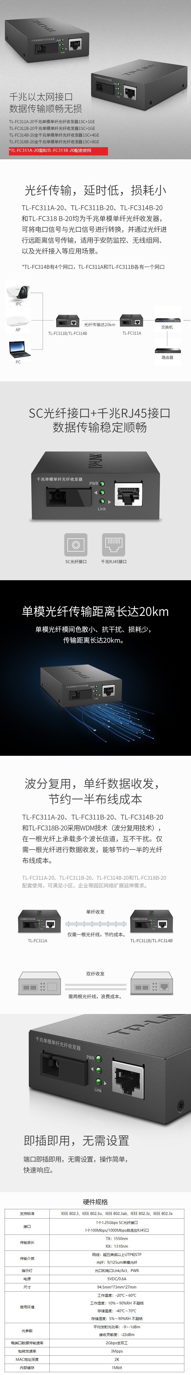 - 商品名稱:TP-LINK TL-FC311A-20 千兆單模單纖光纖收發(fā)器 光電轉(zhuǎn)換器(單只裝)
