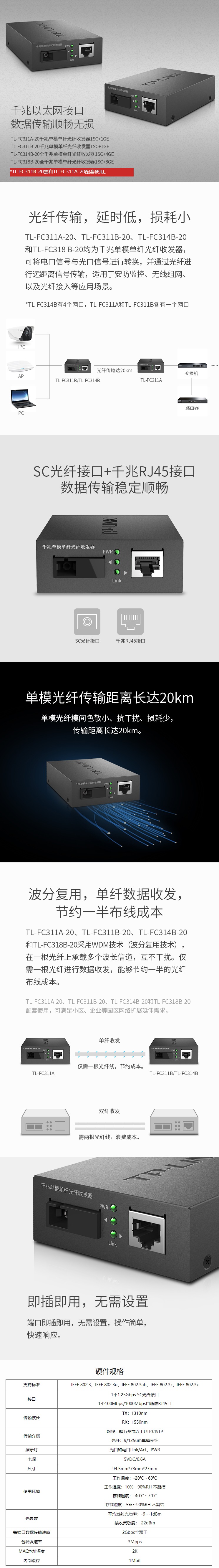 - 商品名稱:TP-LINK TL-FC311B-20 千兆單模單纖光纖收發(fā)器 光電轉(zhuǎn)換器(單只裝)