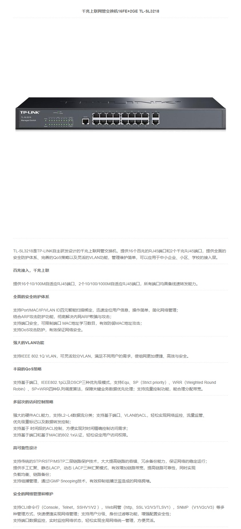 - 商品名稱:TP-LINK TL-SL3218 16口百兆二層網(wǎng)管核心交換機 2千兆上聯(lián)口
